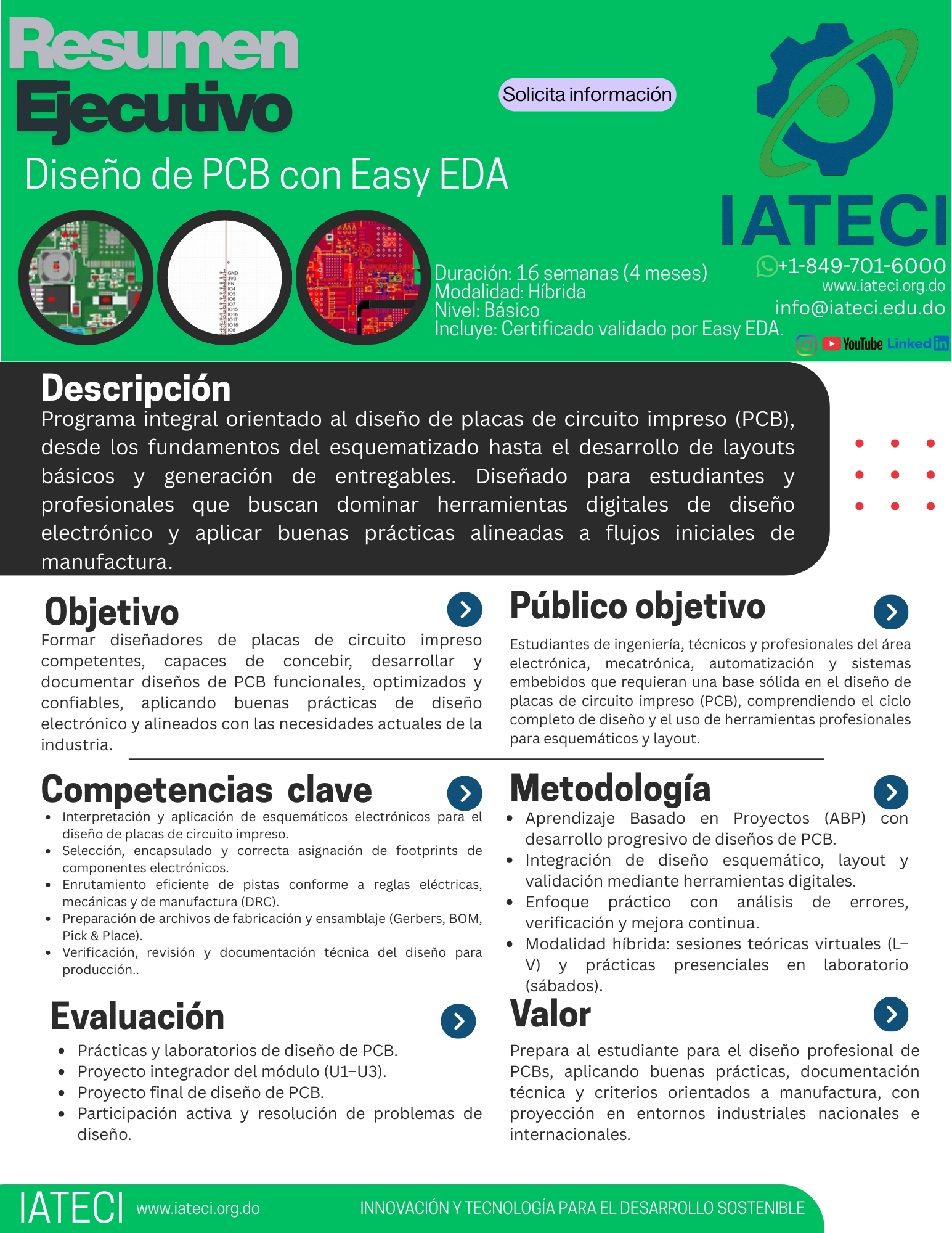 Domina el proceso completo de diseño de placas de circuito impreso (PCB) con herramientas profesionales. Este curso te capacita para crear diseños electrónicos eficientes, generar archivos de fabricación internacional (Gerbers, BOM, Pick & Place), optimizar costos desde el prototipo hasta la producción en serie y utilizar plataformas como EasyEDA Pro, JLCPCB y LCSC para llevar tus ideas a productos reales.