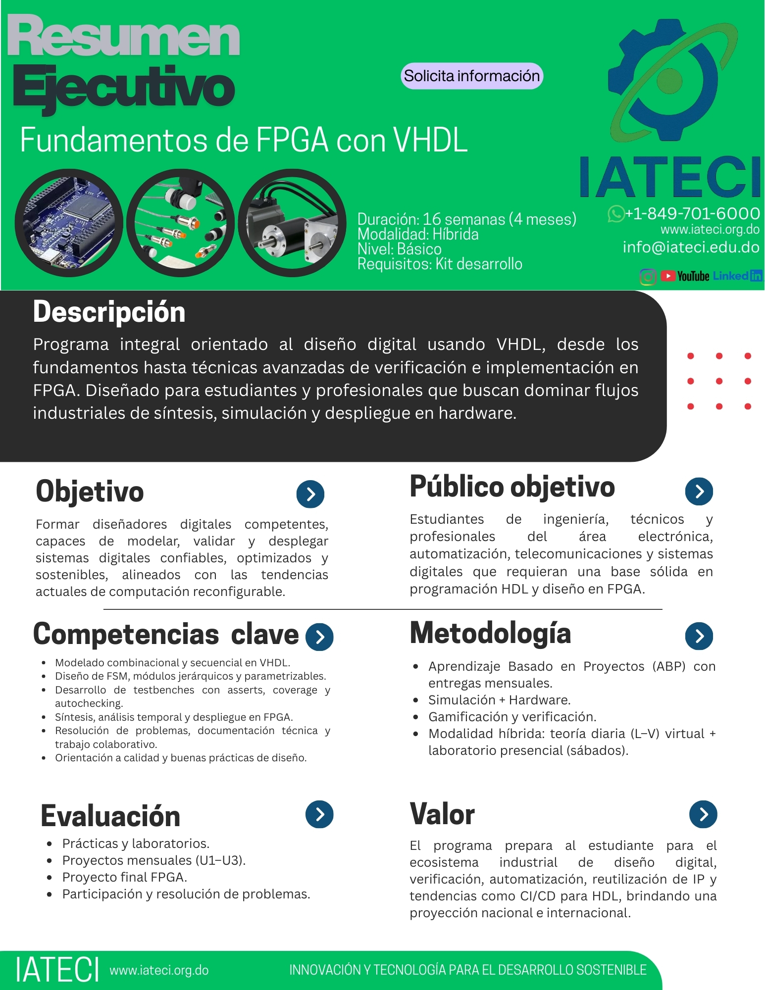 El catálogo de cursos de IATECI ofrece una amplia gama de programas especializados en tecnología, ingeniería, innovación y ciencias aplicadas. Cada curso está diseñado para combinar aprendizaje práctico y fundamentos teóricos, con un enfoque en las tendencias actuales del mercado y las necesidades de la industria. Nuestro objetivo es brindar una formación integral que potencie las competencias técnicas, digitales y profesionales de nuestros estudiantes, impulsando su desarrollo y empleabilidad en el entorno tecnológico global.